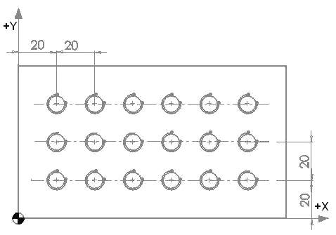 G91 G99 G81 X50. Y0. Z-20. R3. L2 F80 ;