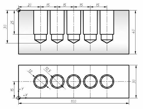 G99 G81 Z-4. R2. F100 ;